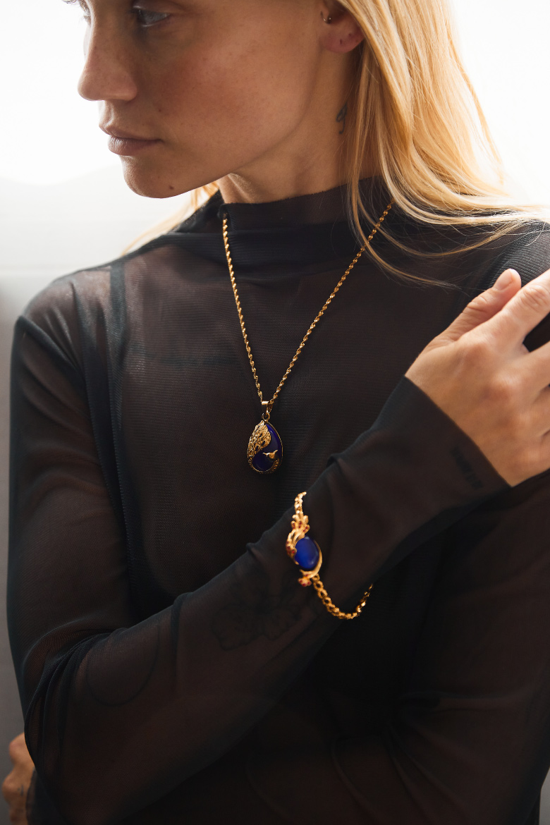 שרשרת כסף משובץ באבני מויסינייט עם אבן ראשית ירוקה
