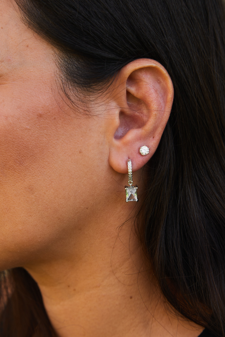 עגילים משובצים אבני מואסנייט צורת ריבוע