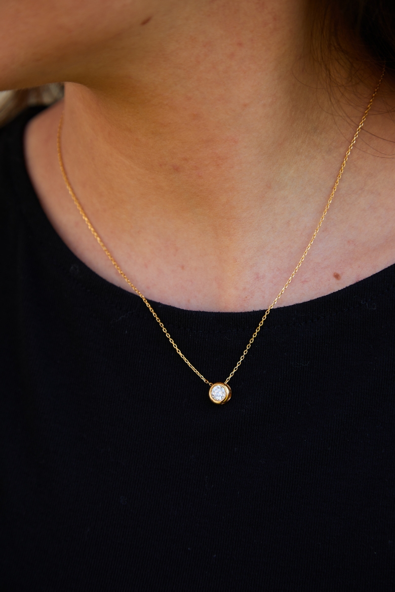 שרשרת כסף טהור 925 צבע צהוב אבן מואסנייט משובצת