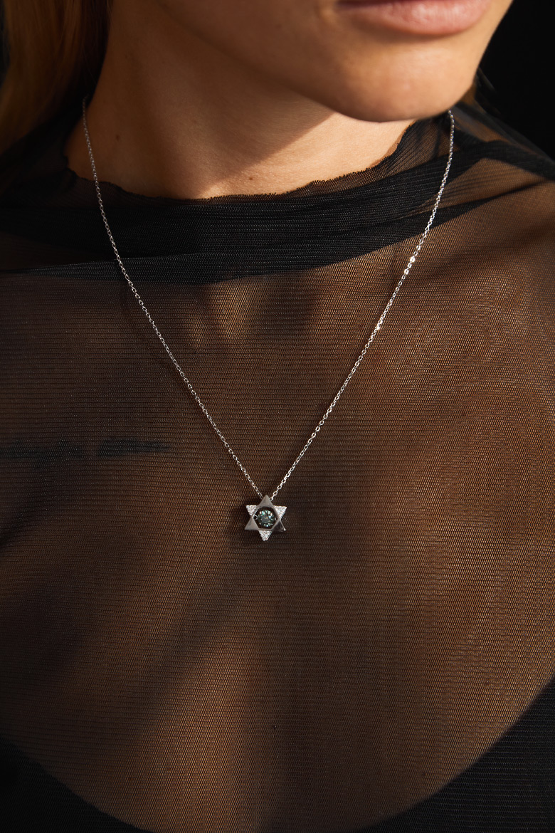 שרשרת כסף טהור 925 תליון מגן דוד משובץ אבן מואסנייט 1 קראט