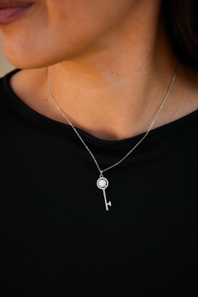 שרשרת כסף משובץ באבני מויסינייט עם אבן ראשית ירוקה